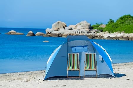- EASY SETUP/CLOSE: Adopting three-pole pin and ring frame system with shock-corded fiberglass poles, this EasyUp tent allows you to easily set up and take down it in 3 minutes without any tool required, even on windy beach.