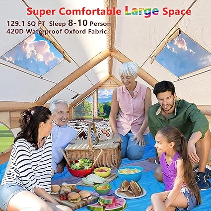 - 【8-10 Person Tent】This large inflatable camping tent can accommodate 8 to 10 people and measures 13.1 feet x 9.8 feet x 6.6 feet, providing approximately 129.2 square feet of space for you and your family or friends to use. This inflatable tents for camping is perfect for car trips, fishing, weekend music festivals, or as a beach tent, making it the perfect addition to your camping essentials.