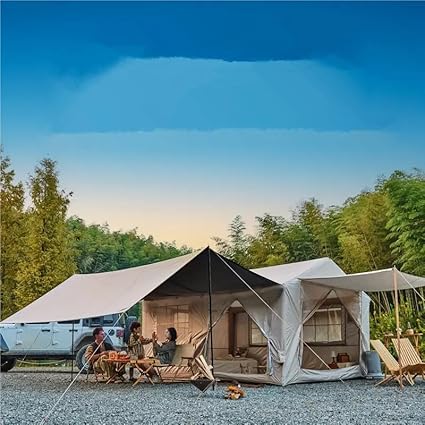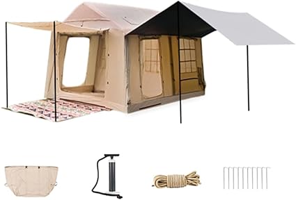 Just used this inflatable tent on a sunny weekend getaway with my crew, and WOW – we’re obsessed! The space is HUGE (seriously, bigger than our last apartment kitchen lol). The “one-room + lounge area” design is GENIUS – kids crashed in the main room while we chilled in the “living room” area playing cards. Felt like a tiny adventure home!Setup was stupid easy – no wrestling with poles, just pumped it up in 5 minutes flat. Super sturdy too – wind tried to mess with us but this bad boy held tight. Super breathable during the day, cozy at night.its really feel like a house.10/10 would recommend to families or groups who wanna camp comfy without the “roughing it” misery. This tent totally made our sunny weekend magical! 🏕✨