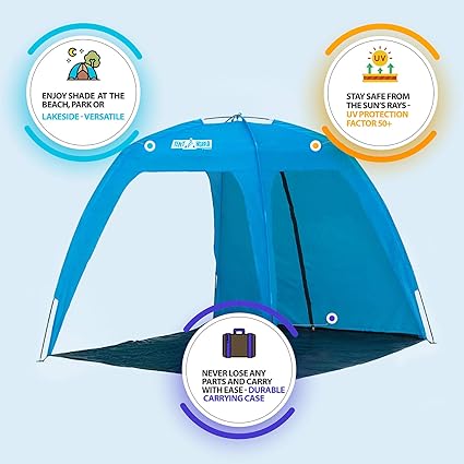 - STAY SAFE FROM THE SUN – UPF 30 FINISH: The sun is wonderful for getting your tan on, but too much exposure can increase the risk of skin cancer, as well as age the skin prematurely. That’s why we’ve coated the Tent World Neptune Tent with a layer of UPF 30 protection, which will prevent overexposure to the sun. Neptune Tent allows you to enjoy a sunny day without worrying about your health