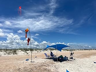 For the price, this sunshade can’t be beat. It works very well to protect from the sun. We use it at the beach and take it each time we go. With a couple people it goes up very easily. It would be a little tricky to do this by yourself, but if there’s little wind it would be doable. Speaking of wind, this shade does pretty good in the wind, but if it gets super gusty, not so much. Also of note this shade works better if you are planning to sit on a chair or lay down on a blanket. It doesn’t work for standing as it isn’t very tall.