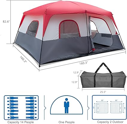 Discover the ultimate 14-person camping tent! Perfect for family adventures, it’s waterproof, easy to set up, and portable. Grab yours today!