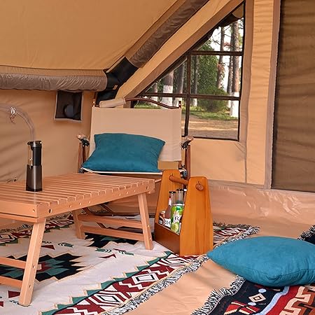 - OXFORD CLOTH INFLATABLE TENT: is a very good camping bell tent, loaded with features for camping in comfort, ease, and style. Oxford cloth is designed for long term use and wide range climates, it’s comfortable for camping outside