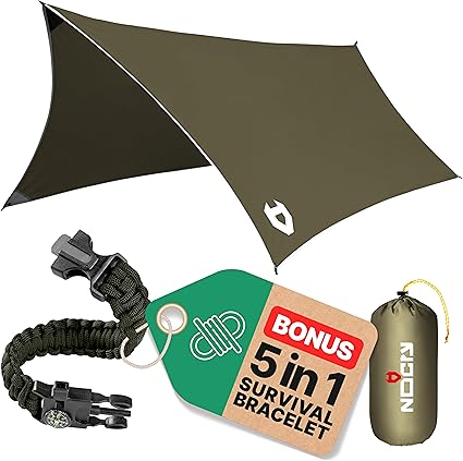 - CREATE AN OUTDOORS SURVIVAL SHELTER IN MINUTES. This 12×10 camping tarp is made out of 210T polyester coated with TPU. But don’t let the lightweight material fool you: the Diamond Ripstop offers heavy duty weather protection.