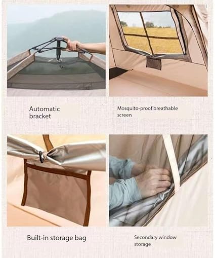 - Spacious design: The interior size is 82*82*61 inches, which can accommodate 2 people and has enough space to store clothes and gear. 2 zippered entrances, 2 large gear storage pockets, and a protective tent corner design to prevent crosswinds from disturbing the camper’s sleep.