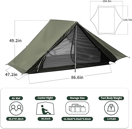 - 【Easy Setup & Compact Storage】✅ The inner and flysheet are integrated, and the sturdy triangular structure allows for quick setup and takedown using two regular trekking poles. Once accustomed, it can be asse.