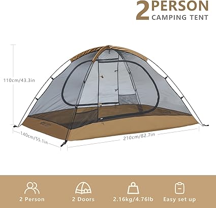 - 【Double-Layer Design】 Features a waterproof outer layer and a breathable full-mesh inner tent for superior ventilation and rain protection, plus two D-shaped doors for easy access—more convenient and weather-resistant than basic single-layer tents.