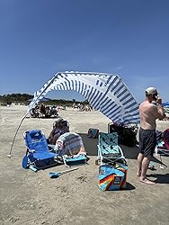 We love this beach shade canopy so much. It is easy to install and so easy to take down. It handles the wind so well.