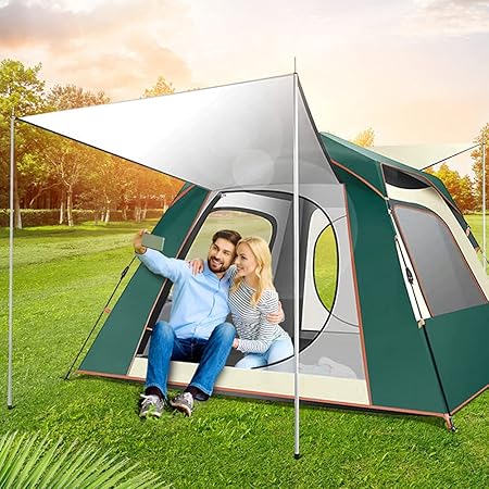 - EXCELLENT VENTILATION: Pop up camping tent has two large special D-shape zipper doors with mesh yarn, an easy access to the tent and good for ventilation.CAPACITY SPACIOUS FOR 3-4 MAN: With the unfolding size of 200* 200* 145CM/240* 240*155CM, the free-standing tent accommodates up to 4 people. Super