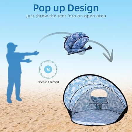 - Instant Setup in Seconds – This pop up beach tent features an easy, no-assembly design, unfolding quickly for instant shade and convenience at the beach, park, or campsite.