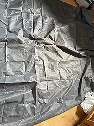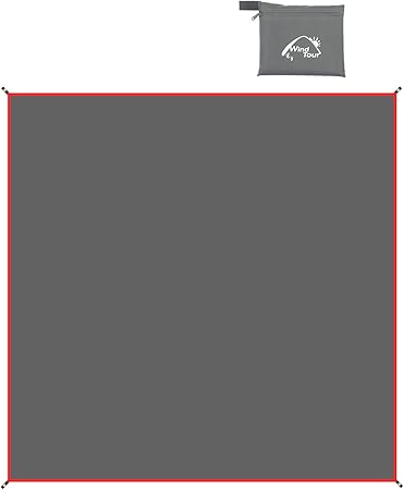 I’m glad I found this deal – finally my search is over! I’ve been looking at low end ways to put a barrier inbetween either my tent and the ground or just my camping blankets and the ground. This works well in those cases it’s also fairly water proof and wind resistant and the eyelets are solidly stitched into the corner straps. A solid outside edge material will help in keeping this working smoothly longterm. It is thin and one side is slick so becareful not to slip lol. This barrier helps to keep your tent or sleeping bags from getting too dirty and from bugs crawling into your bedding. It does come with a zippered pouch but good luck trying to put it back in. Instead I fold it along some of the folds and it easily fits inside of my hiking backpack. Wish it has other color options or camp. It’s steel Grey with a red border black straps and copper like eyelets on all 4 corners.