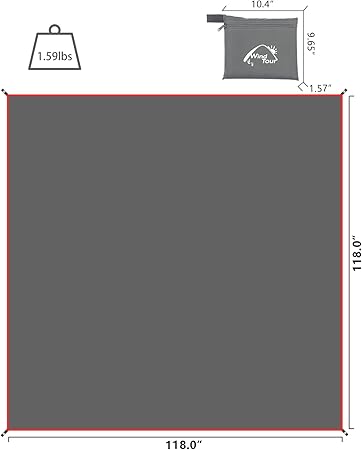 - <b>Multifunctional Tarp</b> – Size is 57″x83″/102″x83″, not only can prevent the tent from being worn out due to contact with the ground; it can also be used as an awning, camping shelter, picnic mat or any type of protective barrier.