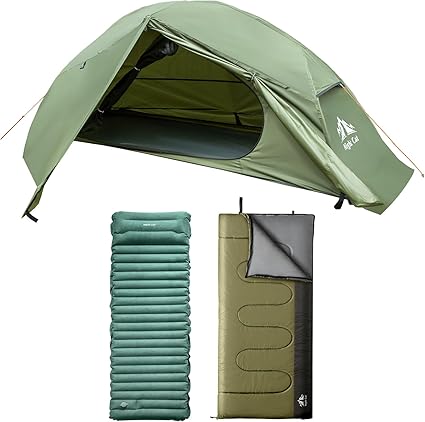 Lightweight Waterproof 1-Person Camping Tent with Sleeping Pad and Bag