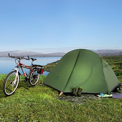 - 【Ultralight Single Person Tent】:Made of lightweight 20D nylon material, this ultralight single person tent only weighs 3.63lbs. Small packed size:15.7 x 5.9 x 5.9 inch,save room for other camping gears, this solo tent is perfect for lightweight backpacking, bikepacking, motorcycle camping, hiking, cycling,fishing,etc.