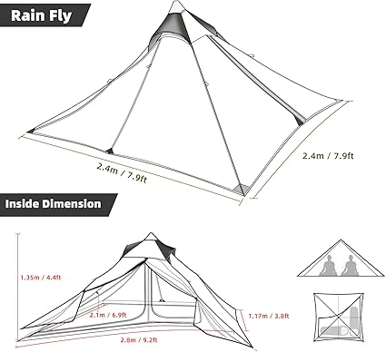 - Measures 7.9′ x 7.9′ x 4.4′, suitable for 1-2 people.