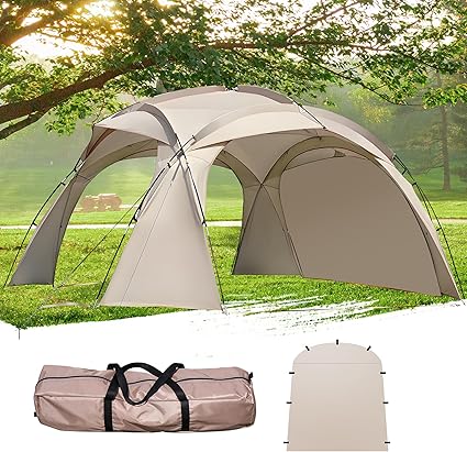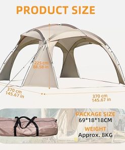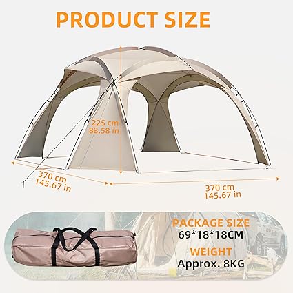 - Spacious 8-16 Person Dome Shelter:Extra-large 12.1×12.1×7.4ft (370x370x225cm) 17.6lbs/8kg design provides 18.5m² shaded area,featuring one removable side panel for partial enclosure while maintaining 3-sided ventilation