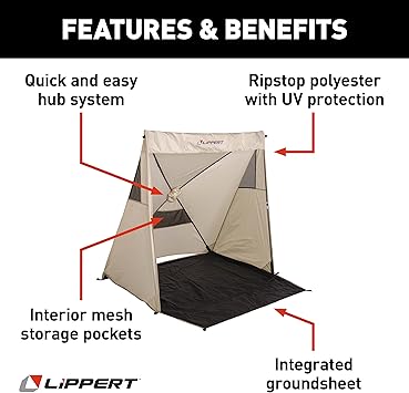 - PROTECTION — This sun shelter has a UPF 50+ rating, which means it provides excellent protection against harsh sun exposure. It also has an integrated groundsheet for enhanced comfort and protection against dirt, mud and water