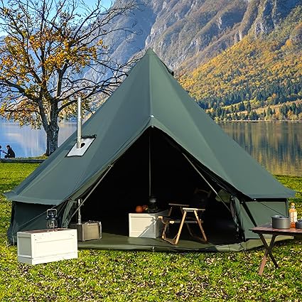 - All-Weather Versatility: In warmer seasons, roll up the sidewalls for enhanced airflow.The UPF50+ roof blocks 99.9% of UV rays while promoting airflow to cool the lower tent space. Reinforced waterproof construction withstands harsh autumn/winter conditions, including heavy snow and strong winds.Canvas Yurt Tent design balances ventilation and structural durability for reliable year-round performance