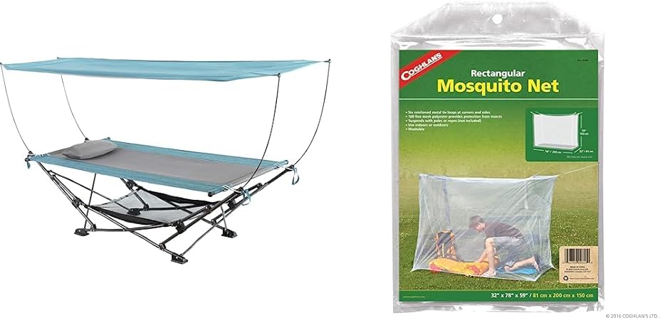 - Six reinforced metal tie tabs at corners and sides to anchor four corners into ground, hang top two corners from tree or posts (Coghlan’s Mosquito Bed Net)