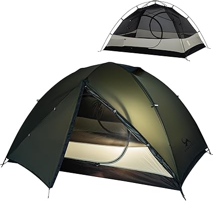 - Good Ventilation: The two person tent has two vents and the doors on both sides can be opened for good ventilation. This backpacking tent has a double-layer design for better air circulation between the tent and the inner tent.The B3 mesh inner tent and the left and right vents provide good ventilation, so there is no need to worry about condensation