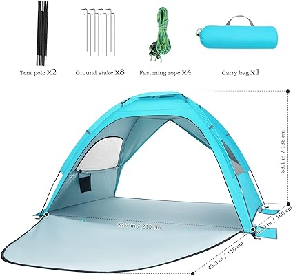 - Convenient Double Doors: With two entrances, this tent allows for easy access and improved airflow, making it a practical choice for beach days or camping trips.