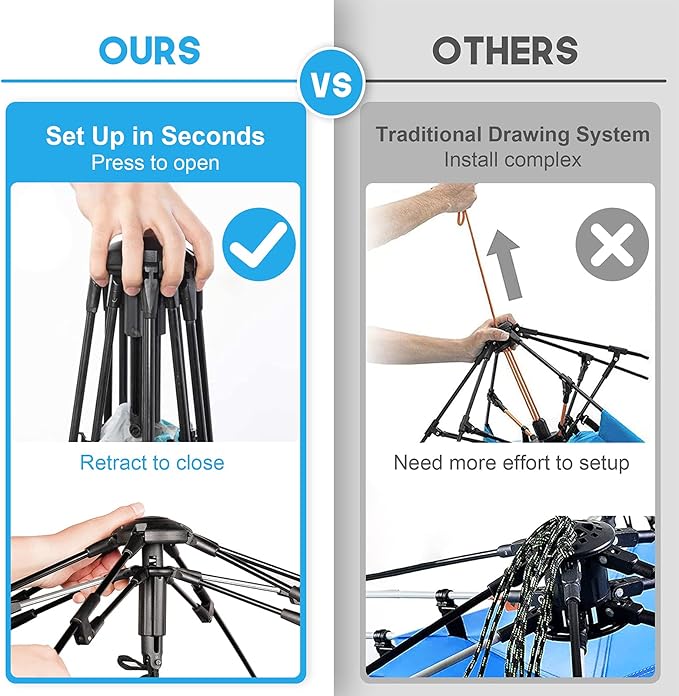 - Easy Set Up & Portable: Quick pop-up mechanism allows setting in under 30 seconds! Light weight, packs down to 36″ x 5″ for easy carrying and storage.
