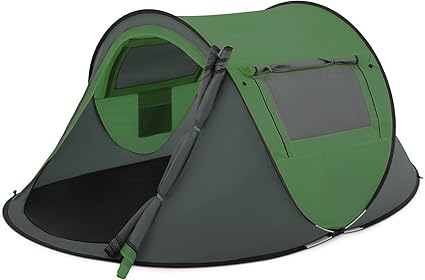 - Quick Easy Setup – Instant pop-up tent with pre-assembled poles sets up in 3 seconds, simply open the bag and let go, so easy and enjoyable and set up the tent. Pops open in the blink of an eye into a ready-to-use camping and lounge tent, and easy to fold back into a compact form. Very roomy for 2-3 adults, ideal for a family rest.