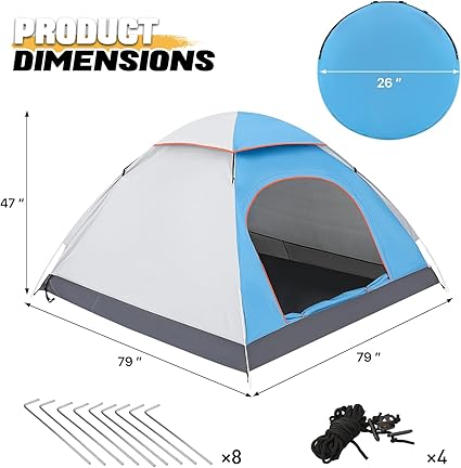 - All-round Protection – A special coating material is added to the outside of the pop up camping tent, while provides all-round protection. Fiberglass tent support pole, durable and light. (Note: This product is not meant to be subject to storm conditions or long periods of rain.)