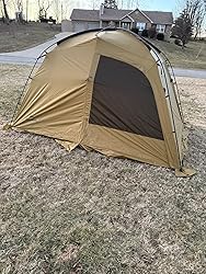 - 4 Season Tent: the tent is a hot tent with stove jack for camping stove, and with snow skirt helps prevent wind and snow, keeping warm in cold weather, it is a perfect winter tent for snow camping; Without using the stove jack, it is still a good choice four season tent with great ventilation: 4 doors for easy access to the tent, and the mesh inner tent provide more air flow in warm seasons,no water condensation problem. The camping tent is a versatile 4 season tent for motorcycle, car camping.