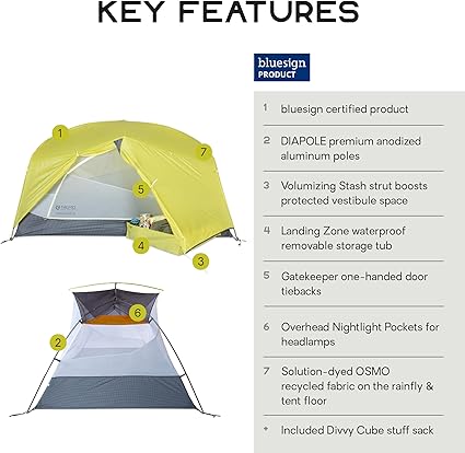 - Color-coded, hubbed pole set with color-matched webbing on the tent makes setup intuitive.