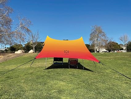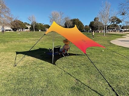 - ULTIMATE VERSATILITY. This revolutionary sun shelter can be anchored with the ground stakes provided or use the carabiner clips combined with the daisy chain loops to hook to poles, trees, fences, boulders, or just about anything. It is a lightweight, portable, UPF 50+, water-resistant sunshade that provides a relaxing space to watch the kids at the park, a soccer game, a campsite or chilling in your backyard.