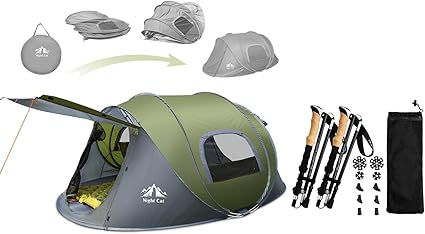 - 【What it Contains】The set includes 1 pcs Night Cat Pop up Tent, and 2 pcs Night Cat Trekking Poles