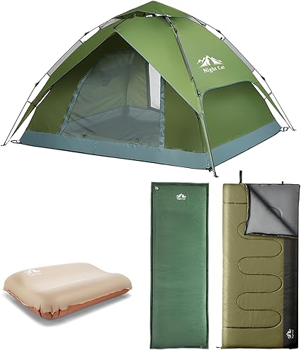 - 【What it Contains】The set includes 1 pcs Night Cat Pop Up Tent, 3 pcs Night Cat Self-Inflating Sleeping Pad,and 3 pcs Self-Inflatable Camping Pillow,3 pcs Night Cat Camping Sleeping Bag