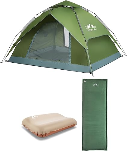- 【What it Contains】The set includes 1 pcs Night Cat Pop Up Tent, 3 pcs Night Cat Self-Inflating Sleeping Pad,and 3 pcs Night Cat Camping Pillow
