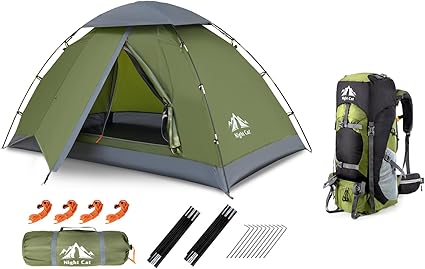 Night Cat Upgraded Backpacking Tent and 70L Hiking Backpack Combo