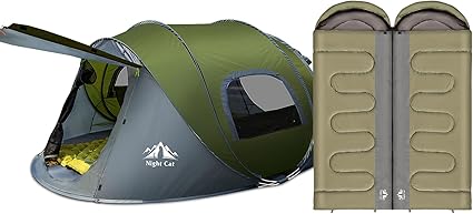 Night Cat Waterproof 2 Person Pop-up Camping Tent with Sleeping Bag