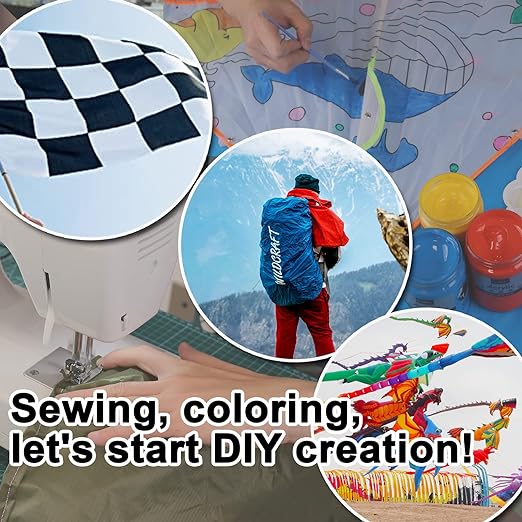 - [Multi-Use Fabric] 9KM DWLIFE 40D ripstop nylon fabric is an airtight, waterproof and UV resistant fabric. These attributes coupled with being strong and durable due to the cross-hatch design in the weave, make Rip-Stop ideal for a variety of uses. With simple sewing, it can be made into various projects such as kite material, backpack, banner, wind spinner, tent, etc. Make your own DIY project with ease!