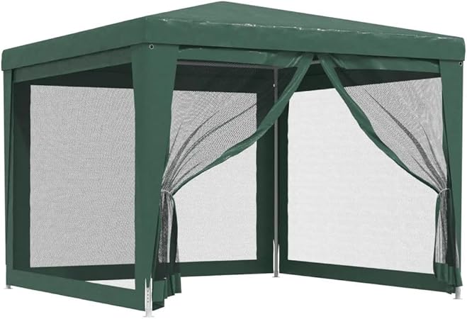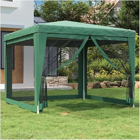 OKJHFD Party Tent with 4 Mesh Sidewalls Green 9.8’X9.8′ Hdpe 6.6′-Eave Height from The Ground 319228