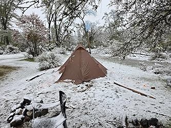 - ★ 𝙁𝙪𝙡𝙡 𝙆𝙞𝙩 𝙄𝙣𝙘𝙡𝙪𝙙𝙚𝙙: Comes with a 5.25ft (1.6m) tent pole, 6 ultralight aluminum tent stakes, a pre-installed stove jack, 6 guy-lines, a half floor mat, and a stuff sack, fully loaded for you trips