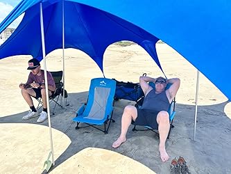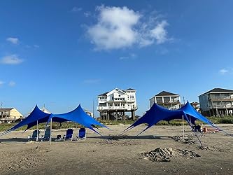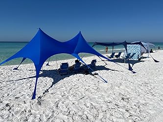 Used this many times on our vacation at the beach. Not as fast to setup as those that only have four legs but provided much more shade and was much larger. We easily fit our family of 6 under this on shade. Poles and sand anchors seem to be of reasonable quality and the fabric lasted well in some very windy days. Because the sides dip down further than other similar tents when it’s windy you really need more than 3 support poles. We used two from our other similar shade on the windward side to prop it up further, which worked very well. The plastic shovels worked but were much more flimsy than our other similar shade.
