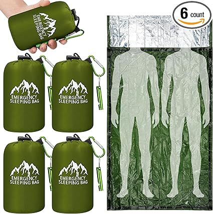 - Integrated Emergency Kit: the package contains 6 emergency sleeping bags; Each one is equipped with an emergency whistle and a carabiner, ensuring that you are fully prepared in emergency situations; The whistle can be used to send out distress signals, while the carabiner can be easily attached to your backpack