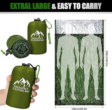- Quality and Versatile: these survival sleeping bags are made of durable and waterproof materials, capable of withstanding harsh outdoor conditions; They offer maximum protection and warmth in emergency situations, making them an essential part of survival gear, whether it’s for camping, hiking, or emergency preparedness