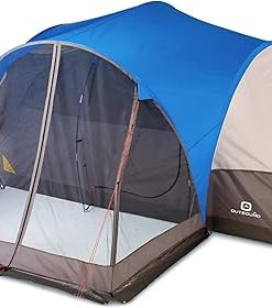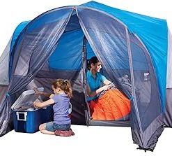- Durable Construction: Full coverage heavy duty 600 mm coated rain fly with a front canopy provides weather protection; Tent includes attached rainfly, room divider, tent stakes, and guy lines