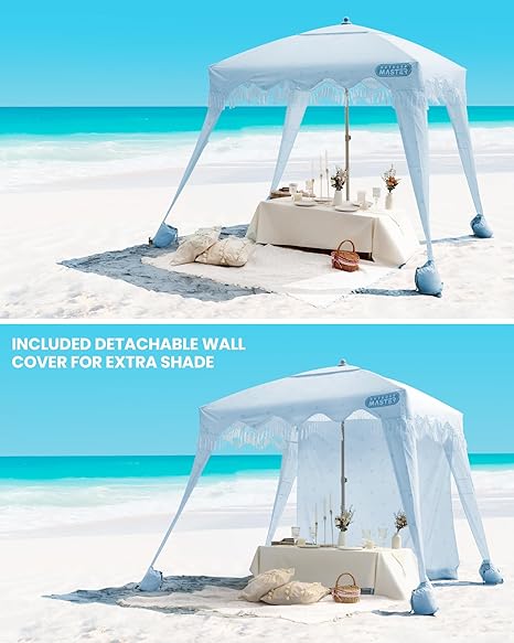 - 2024 Upgrade Beach Cabana: OutdoorMaster beach cabana tent featuring fringes, adds romantic moments to your vacation. With the sunset glow, feel the warmth and happiness of love. Get Full Shade Under The Roof With The Included Removable Wall. It’s made out of the same high quality, UPF 50+ UV protection, waterproof fabric as the rest of the cabana