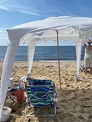 We have tried many cabanas, but this one is by far our favorite because of how easy it is to set up and take down. Also, it provides a lot of shade, which is something that I truly enjoy and look for and a beach cabana.