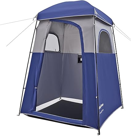 - 【STRONG & STURDY PRIVACY TENT】 Constructed with 1000mm PU-coated waterproof, thick Oxford cloth and a strong, flexible steel frame, this camping shower tent is durable, stands independently, and resists breakage and corrosion. The tent’s roof and side mesh windows promote air circulation and ventilation, while the durable PE floor keeps you dry and clean, protecting you from wet ground during showers or while changing clothes.