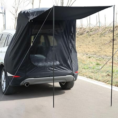 - [Air Flow and Privacy] This Camper Shade Awning Canopy provides extra space and privacy with a large shade area and closed-off private space. It comfortably fits tables, chairs, and up to 5-6 people when fully opened. It is an outdoor camping essential when camping,trip,or simiply enjoying a day in the great outdoors.