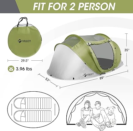 Discover the VILLEY 2 Person Easy Pop Up Tent! Waterproof, lightweight, and automatic setup—perfect for camping or beach trips. Get yours today!
