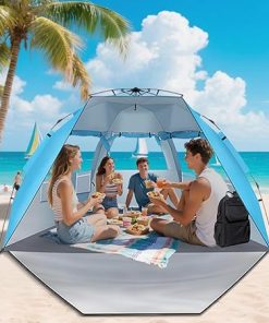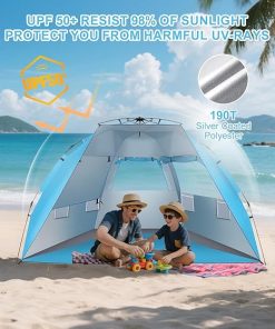 - [SPACIOUS & DURABLE DESIGN]: With a roomy 98.4″ x 55.1″ x 59.1″ interior, this pop-up beach tent offers plenty of space for 3-4 people, You can enjoy the gentle sea breeze with your family. The high-strength fiberglass frame stands firm against coastal winds, while the reinforced Oxford fabric ensures long-lasting durability