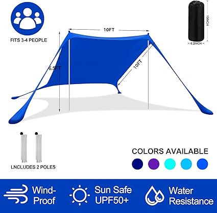 - MULTIPURPOSE – This portable sun beach shade can be your go-to partner for going to the beach, park, picnic, party or fishing. Enjoy relaxing on the beach, camping trips, backyard barbecues, park picnics, river fishing, sports, music festival, watch the waves, a soccer game or other outdoor events. You can set up almost anywhere!